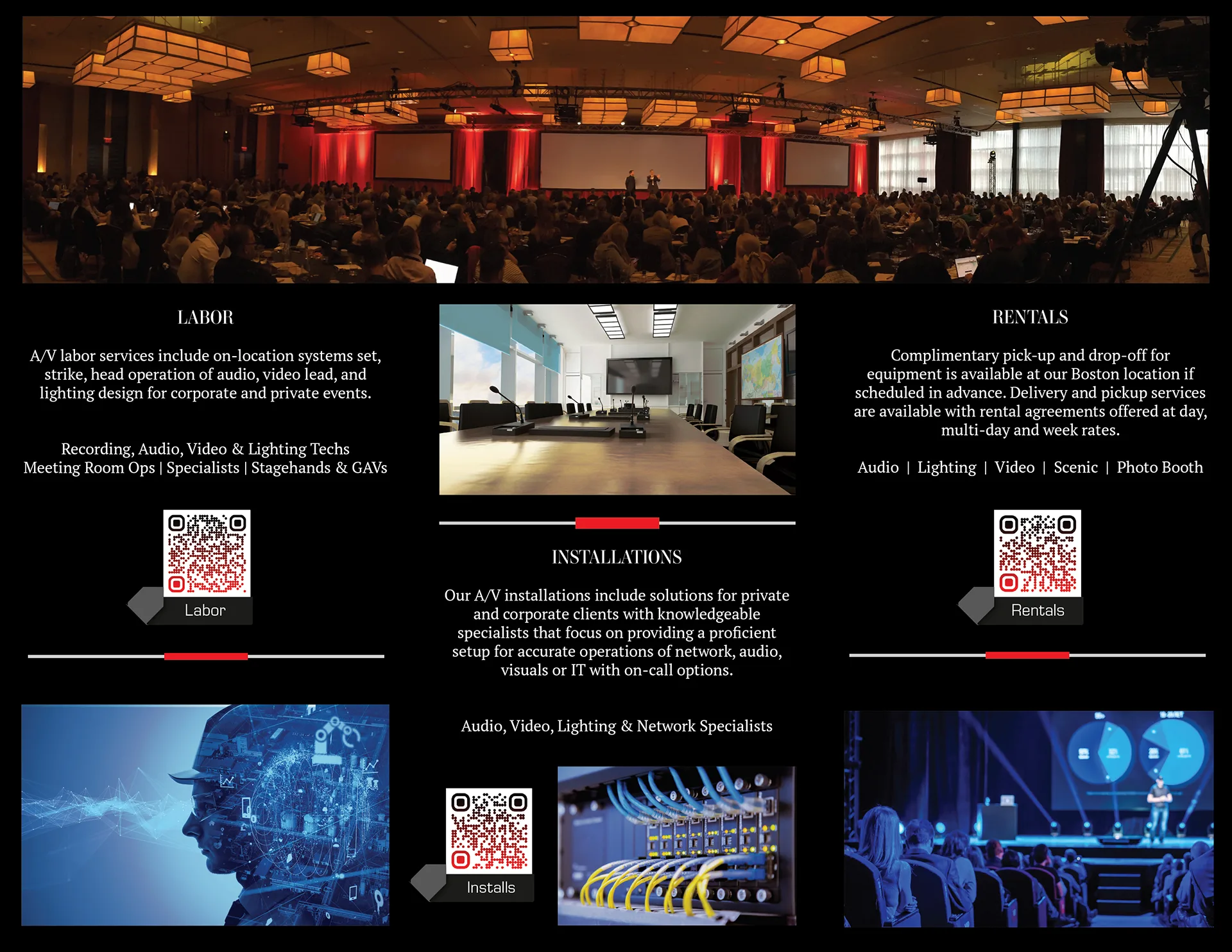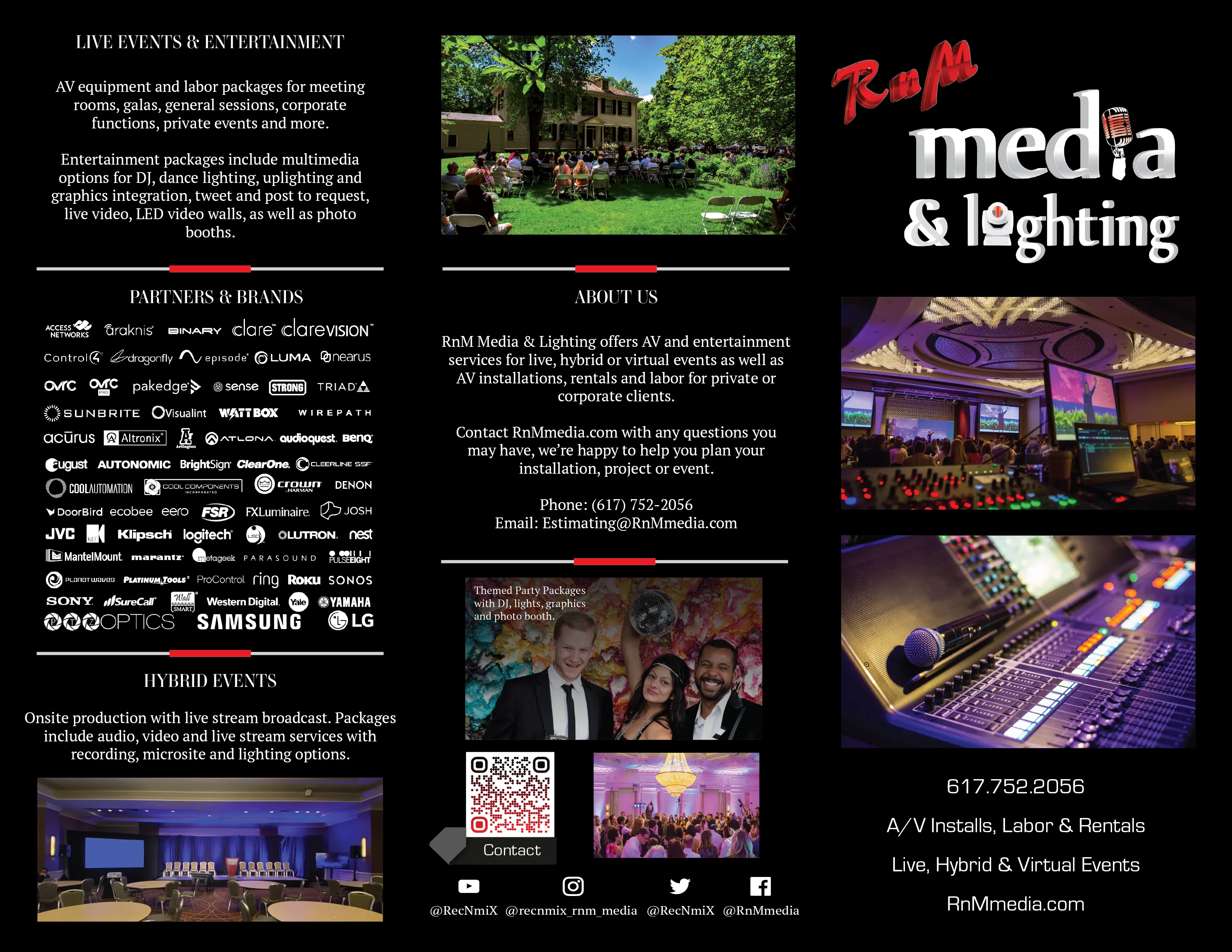 RnM Media & Lighting offers AV and entertainment services for live, hybrid or virtual events as well as AV installations, rentals and labor for private or corporate clients.